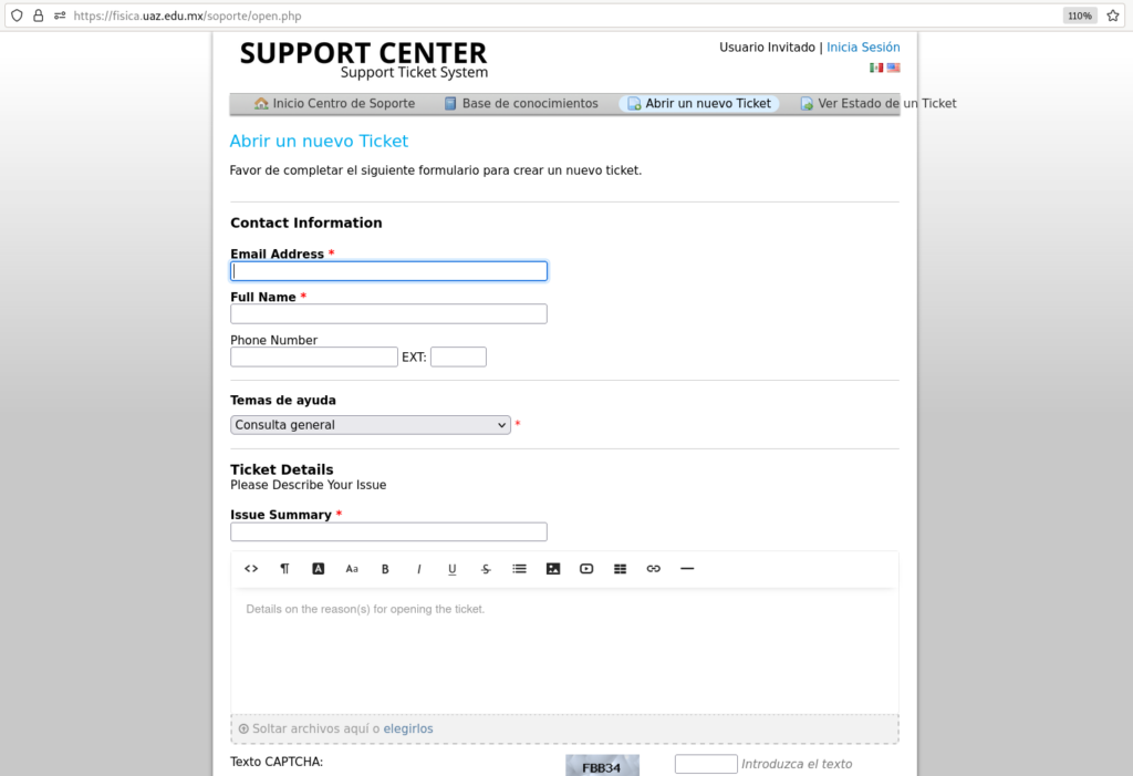 Por cada solicitud que realices se le asignará un Número de Ticket , con este dato podrás dar seguimiento al Estado de Atención y/o Resolución de tu solicitud, accesando con tu correo electrónico @fisica.uaz.edu.mx